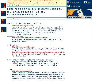 Afin de parvenir à une meilleure cohérence dans le secteur, le projet définit un référentiel répertoriant 26 métiers multimédia, répartis en 7 familles : celles de la conception d’une part (conduite de projet, scénarisation, conception et réalisation graphique, développement) et celle de l’exploitation d’autre part (administration de site, webmarketing…).