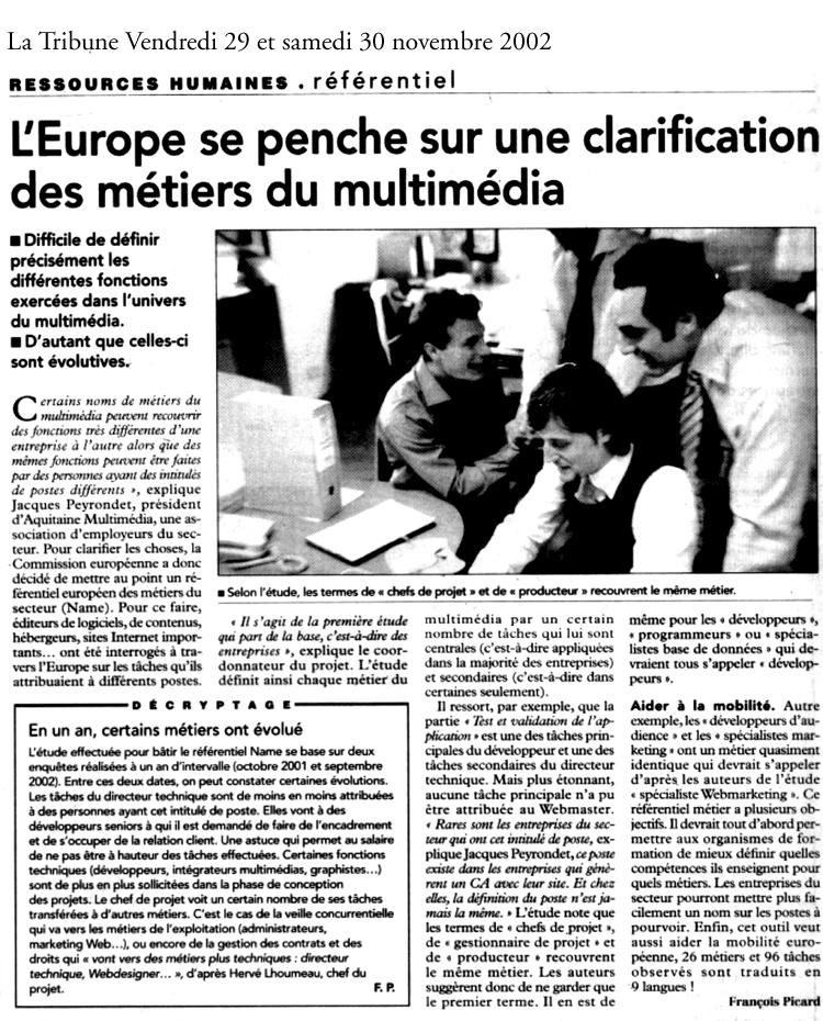La Tribune "L'Europe se penche sur une clarification des métiers du multimédia"