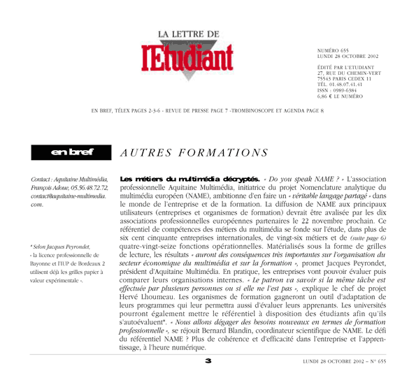 La Lettre de l'Étudiant "Les métiers du Multimédia décryptés"